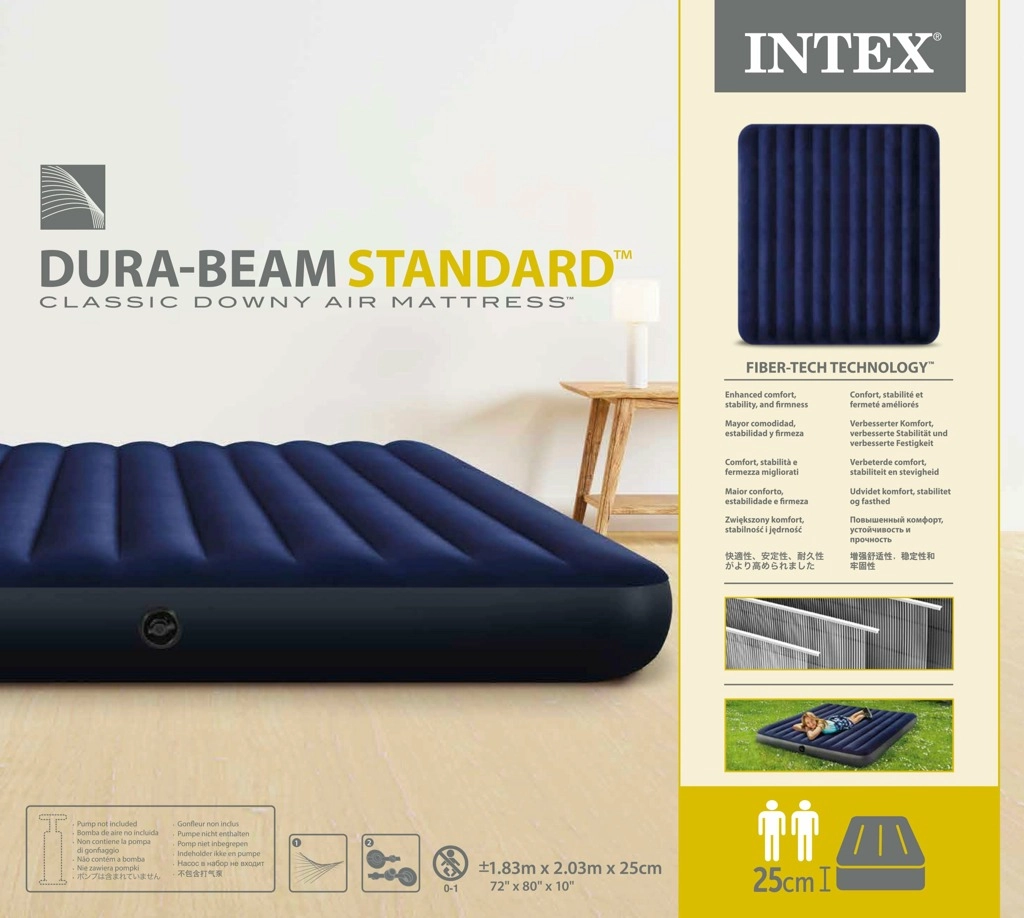 Το φουσκωτό στρώμα INTEX έχει σχεδιαστεί για να παρέχει μέγιστη άνεση και εύκολο χειρισμό. Χάρη στην πατενταρισμένη τεχνολογία Dura-Beam Fiber είναι εξαιρετικά ανθεκτικό και αξιόπιστο. Η βαλβίδα Boston επιτρέπει εύκολο φούσκωμα και ξεφούσκωμα του στρώματος μέσα σε λίγα λεπτά. Περιλαμβάνει επιδιορθωτικό αυτοκόλλητο σε περίπτωση μικρής ζημιάς.