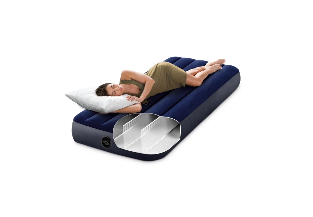 Το φουσκωτό στρώμα της INTEX είναι η ιδανική λύση για όσους αναζητούν άνεση και λειτουργικότητα. Είναι εξαιρετικό για ύπνο κατά τη διάρκεια απρόσμενων επισκέψεων, καλοκαιρινών εκδρομών ή bivouac. Χάρη στις γενναιόδωρες διαστάσεις του προσφέρει άφθονο χώρο για ένα άτομο, το οποίο μπορεί να ξεκουραστεί άνετα.