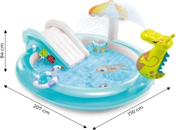 Σας προσφέρουμε την ιδανική λύση για τις ζεστές καλοκαιρινές ημέρες – τη φουσκωτή παιδική πισίνα «παραμυθένιος κόσμος» από την INTEX, που παρέχει στα παιδιά σας απεριόριστες δυνατότητες υδάτινης διασκέδασης. Μεγάλες διαστάσεις 201 x 170 cm εξασφαλίζουν άφθονο χώρο για παιχνίδι και η μαλακή φουσκωτή επιφάνεια προσγείωσης εγγυάται ασφάλεια στη τσουλήθρα. Η πισίνα διαθέτει βαλβίδα αποστράγγισης για γρήγορη εκκένωση του νερού.