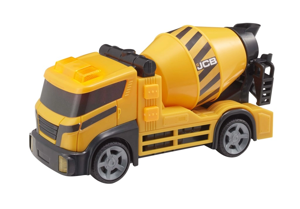 Αυτή η μπετονιέρα μοιάζει με πραγματική μηχανή χάρη σε λεπτομέρειες όπως ο περιστροφικός κάδος, οι ρόδες και το λογότυπο JCB.
