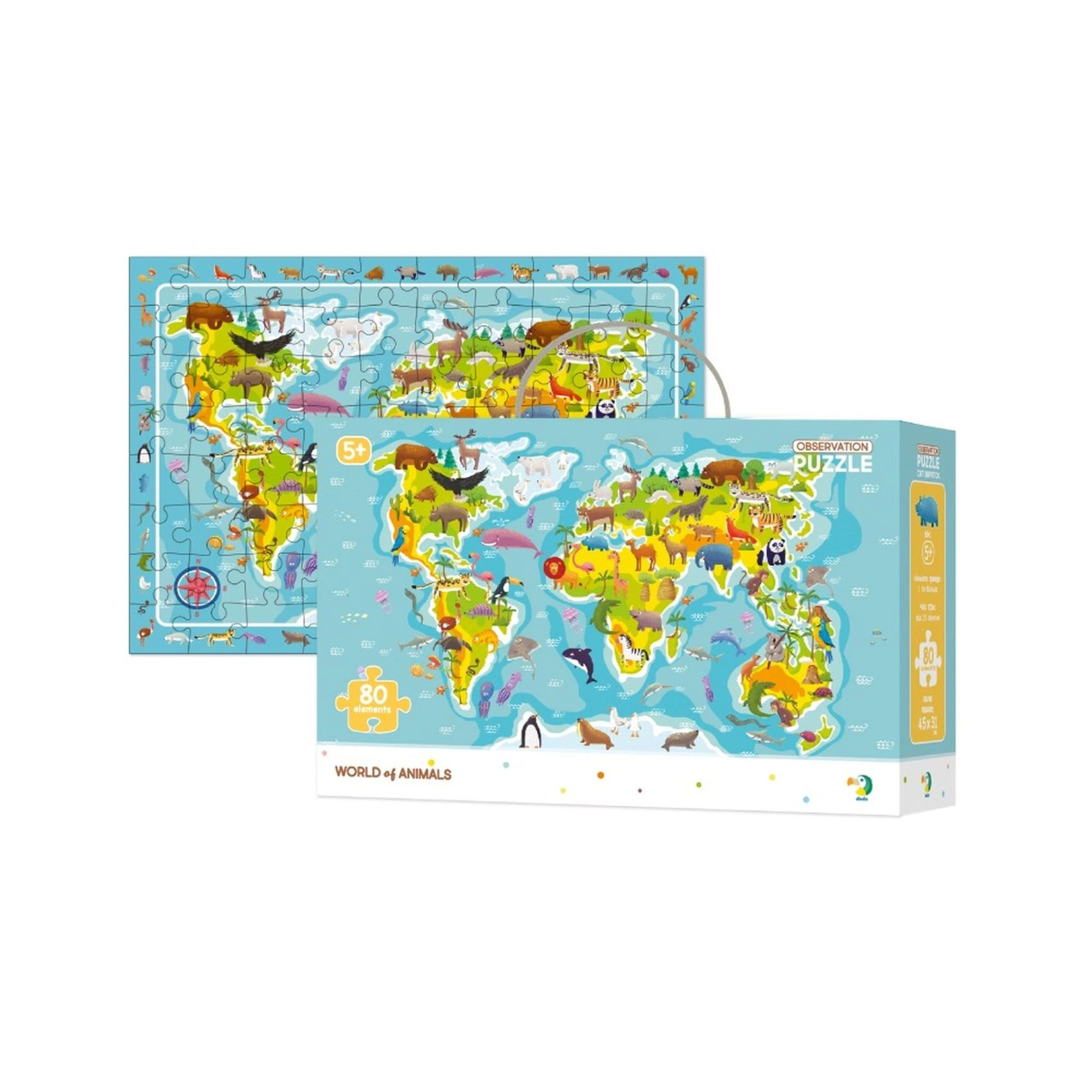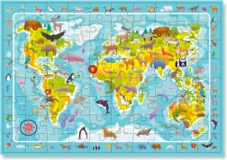 Ανακαλύψτε τον κόσμο της πανίδας με αυτά τα πολύχρωμα παζλ, που όχι μόνο διασκεδάζουν τα παιδιά, αλλά και τα εκπαιδεύουν. Αφού συναρμολογήσουν, μπορούν να παίξουν το παιχνίδι Βρες και ανακάλυψε και να προσδιορίσουν τη θέση των ζώων στον παγκόσμιο χάρτη. Εκπαιδευτικό παζλ με 80 κομμάτια που υποστηρίζει την ανάπτυξη της προσοχής, της λεπτής κινητικότητας και της λογικής σκέψης.