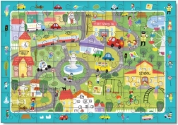 Διασκεδαστικό εκπαιδευτικό παζλ με θέμα την πόλη, που μετά τη συναρμολόγηση προσφέρει διαδραστικό παιχνίδι αναζήτησης. Τα παιδιά θα ανακαλύψουν κτίρια, μέσα μεταφοράς και αστικά στοιχεία, θα εξασκήσουν λεξιλόγιο, μνήμη και συγκέντρωση και θα απολαύσουν κοινή διασκέδαση. Περιλαμβάνει 80 κομμάτια, διαστάσεις μετά τη συναρμολόγηση 45 × 31 cm, ιδανικό για παιδιά από 5 ετών.