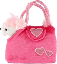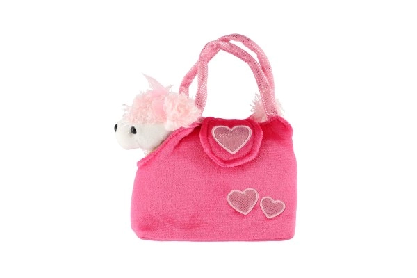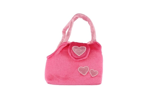 Χαρούμενο ροζ τσαντάκι με καρδούλες και απαλό σκυλάκι με κορδελάκι που θα ενθουσιάσει κάθε μικρή φίλη των ζώων.
