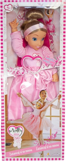 Όταν πατήσετε το στήθος της, ξεκινούν απαλές μπαλετικές μελωδίες που σας μεταφέρουν στον μαγικό κόσμο του μπαλέτου. Η Μόλι είναι ιδανική για παιδιά από 3 ετών και απαιτεί 3× LR44 μπαταρίες, οι οποίες περιλαμβάνονται στη συσκευασία.