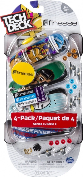 Ανακάλυψε τον κόσμο του fingerboarding με την τετράδα Tech Deck. Οδήγησε μικροσκοπικά skateboard μόνο με τα δάχτυλα, εξασκήσου σε κόλπα και συνδύασε πρωτότυπα σχήματα και σχέδια. Στη συσκευασία θα βρεις όλα όσα χρειάζεσαι, συμπεριλαμβανομένων mini εργαλείων, ανταλλακτικών trucks και ροδών και αυτοκόλλητων. Ιδανική επιλογή για αρχάριους και προχωρημένους, από 6 ετών.