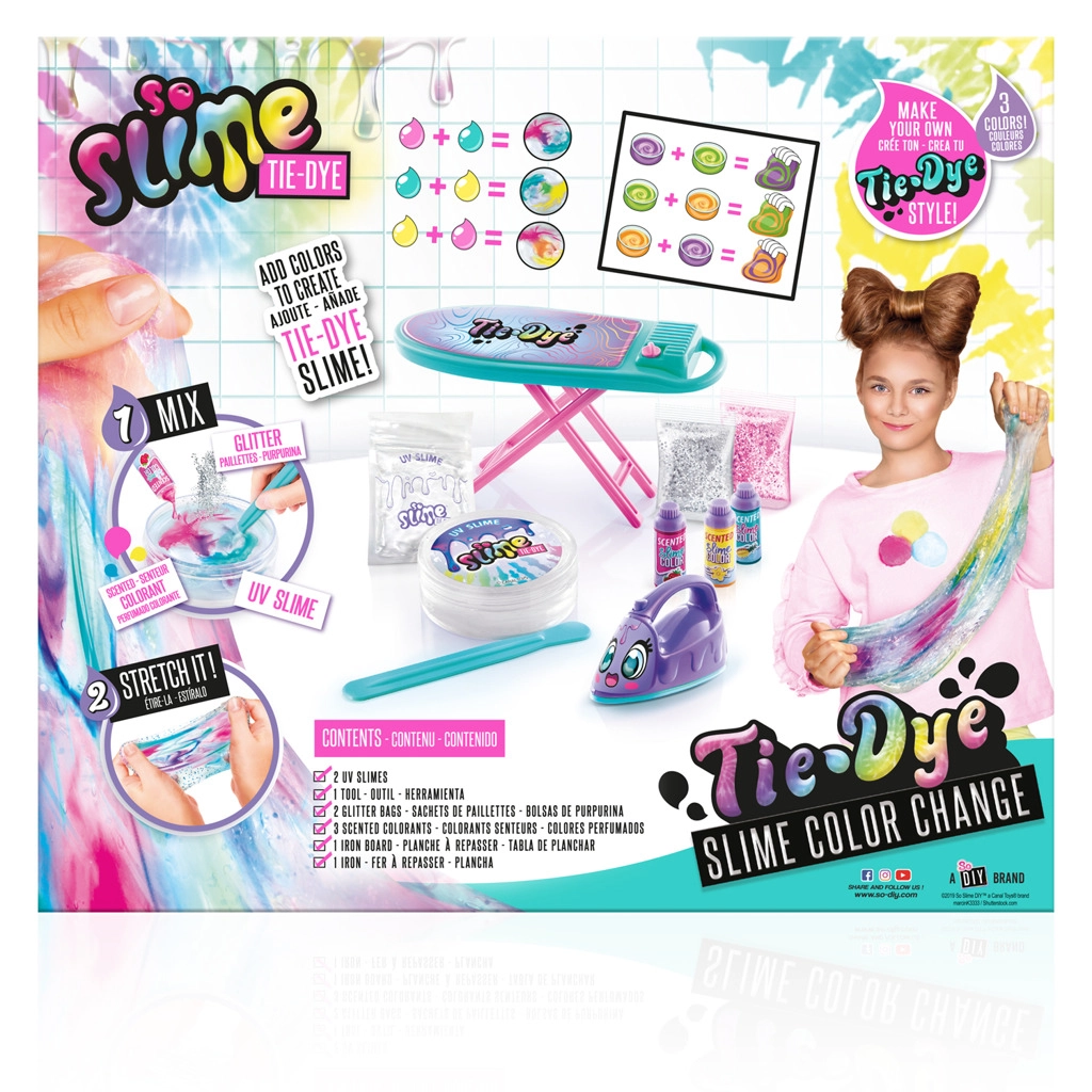 Ζήστε τη χαρά της δημιουργίας με το So Slime Tie-Dye σετ για ουράνιο τόξο slime. Αυτό το σετ σας επιτρέπει να δημιουργήσετε μοναδικό slime που αλλάζει χρώμα με τη βοήθεια UV φωτός. Περιλαμβάνει: