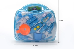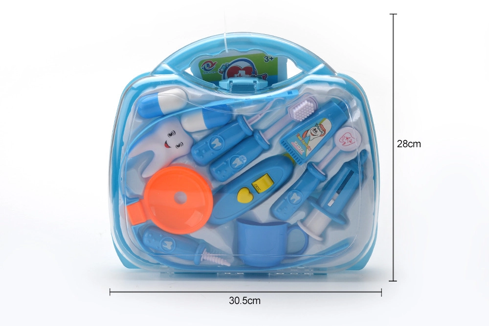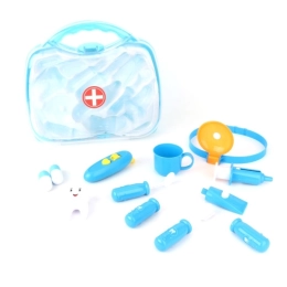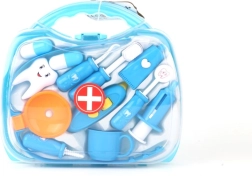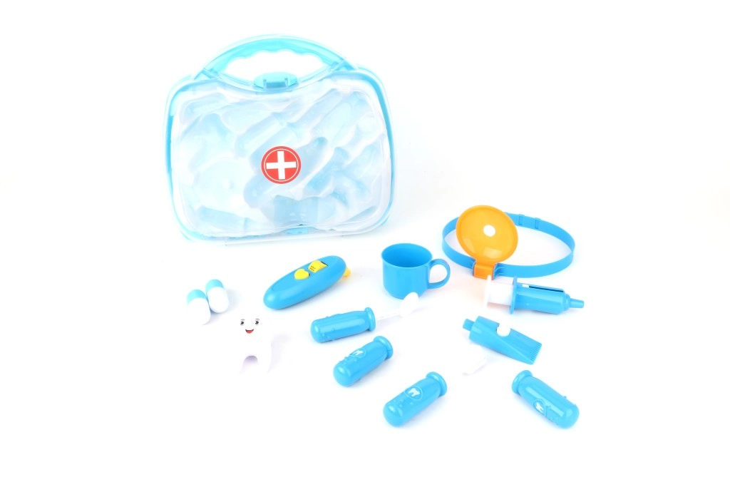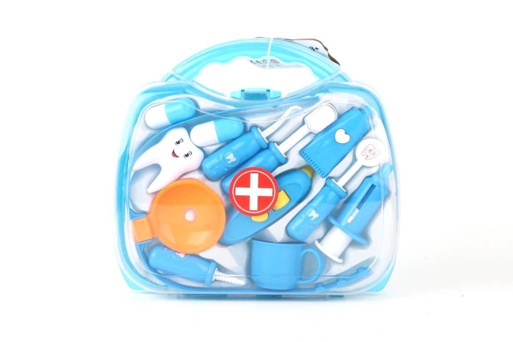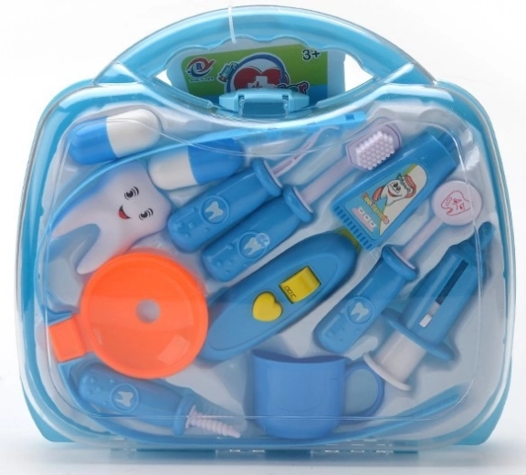 Το διάφανο μπλε βαλιτσάκι κρύβει διάφορα οδοντιατρικά βοηθήματα, συμπεριλαμβανομένων βουρτσάκι, «οδοντόκρεμας» και οδοντικού μοντέλου. Ιδανικό για εξάσκηση υγιεινών συνηθειών και δημιουργικό παιχνίδι «οδοντιάτρου».