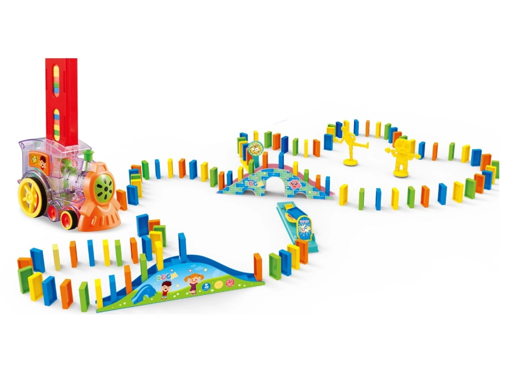 Αυτή η διαδραστική ατμομηχανή με ντόμινο είναι ιδανικό παιχνίδι για μικρούς «κατασκευαστές». Τα παιδιά δημιουργούν εύκολα τις δικές τους διαδρομές ντόμινο και παρακολουθούν με ενθουσιασμό τα τουβλάκια να πέφτουν το ένα μετά το άλλο. Το παιχνίδι αναπτύσσει τον συντονισμό χεριού–ματιού, την υπομονή και τη φαντασία.