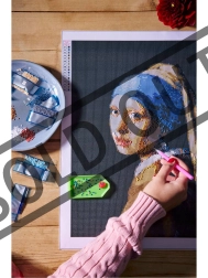 Η διαμαντέζικη ζωγραφική από τη GRAFIX προσφέρει μια χαλαρωτική δημιουργική εμπειρία. Με τον εφαρμοστή και το κερί κολλάτε διαμαντάκι-διαμαντάκι στα σημειωμένα σημεία πάνω στον καμβά με την αυτοκόλλητη επίστρωση και σταδιακά δημιουργείτε ένα λαμπερό έργο με το εμβληματικό μοτίβο Κορίτσι με το Μαργαριτάρι σε μέγεθος 40 × 50 cm.