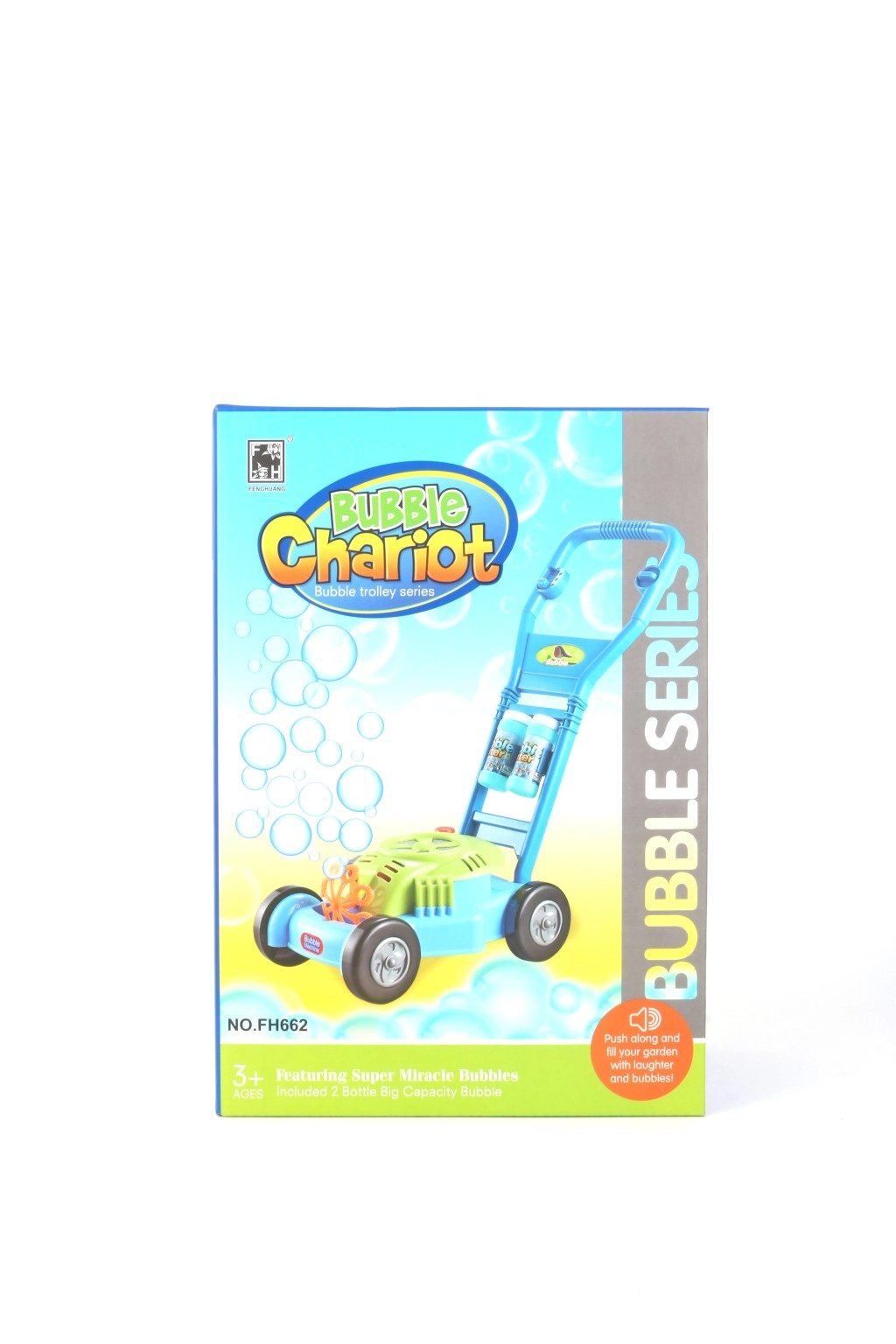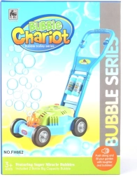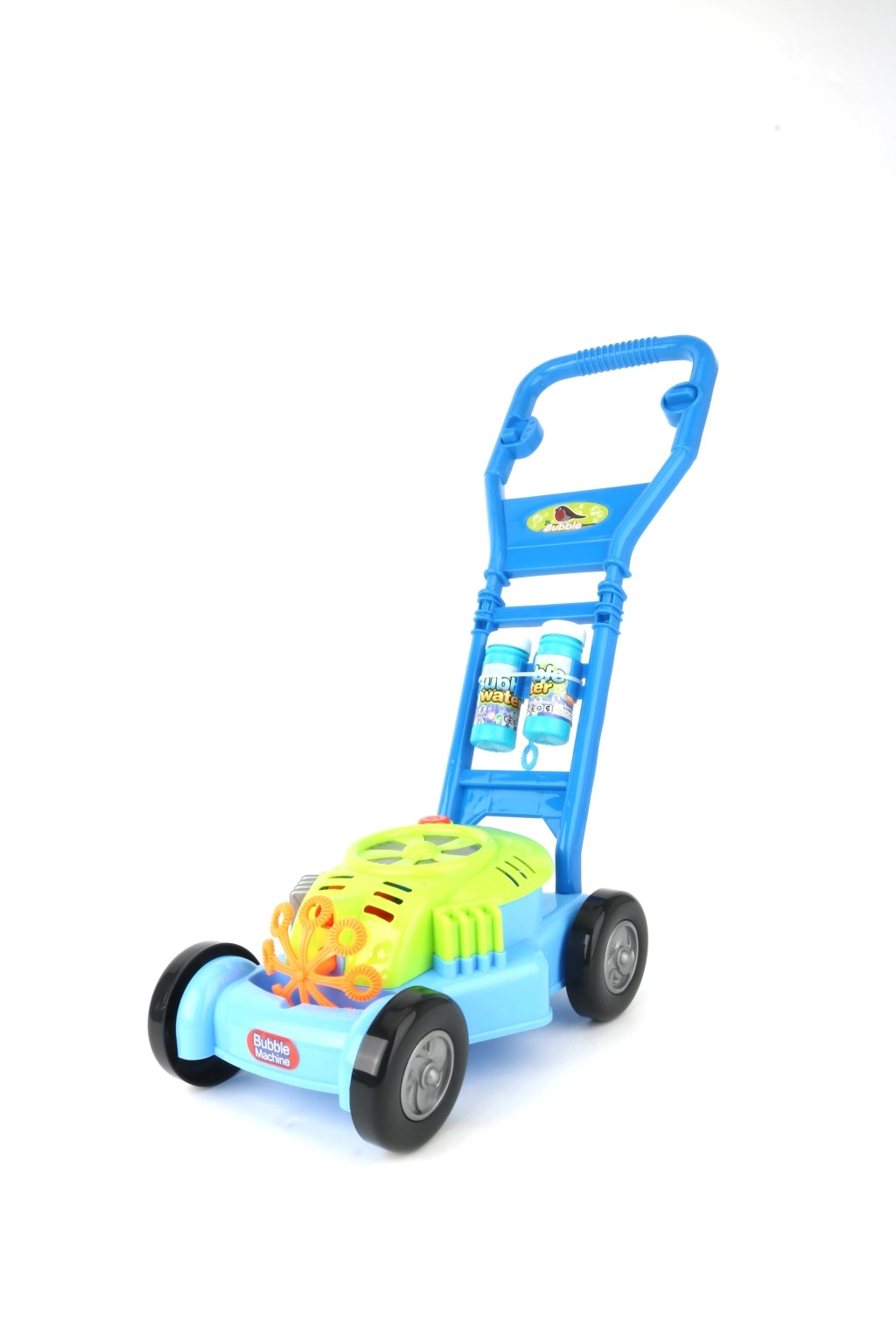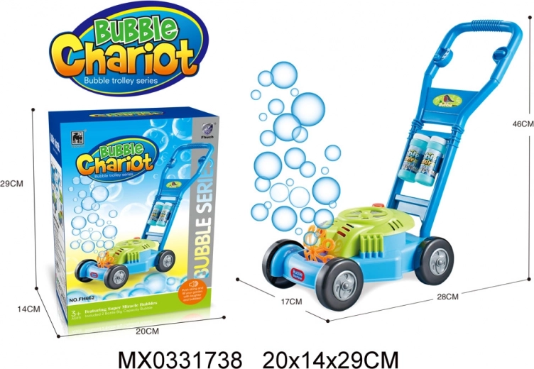 Η φουσκωτή χλοοκοπτική μηχανή μετατρέπει κάθε κήπο σε ένα παιχνιδιάρικο βασίλειο φυσαλίδων. Τα παιδιά απολαμβάνουν ρεαλιστικό παιχνίδι κουρέματος γρασιδιού, ενώ από το εσωτερικό της μηχανής ρέει πλήθος φυσαλίδων που τα παρακινούν να κινηθούν και αναπτύσσουν τη λεπτή κινητικότητά τους και τη φαντασία τους.