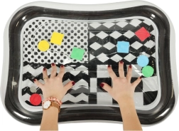 Το χαλάκι προσφέρει πλούσια αισθητηριακή διέγερση με έντονες αντιθέσεις χρωμάτων και κινούμενα πολύχρωμα σχήματα στο εσωτερικό. Υποστηρίζει εξαιρετικά την οπτική και απτική ανάπτυξη.