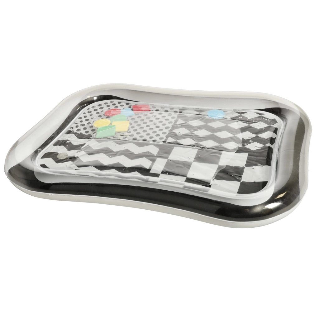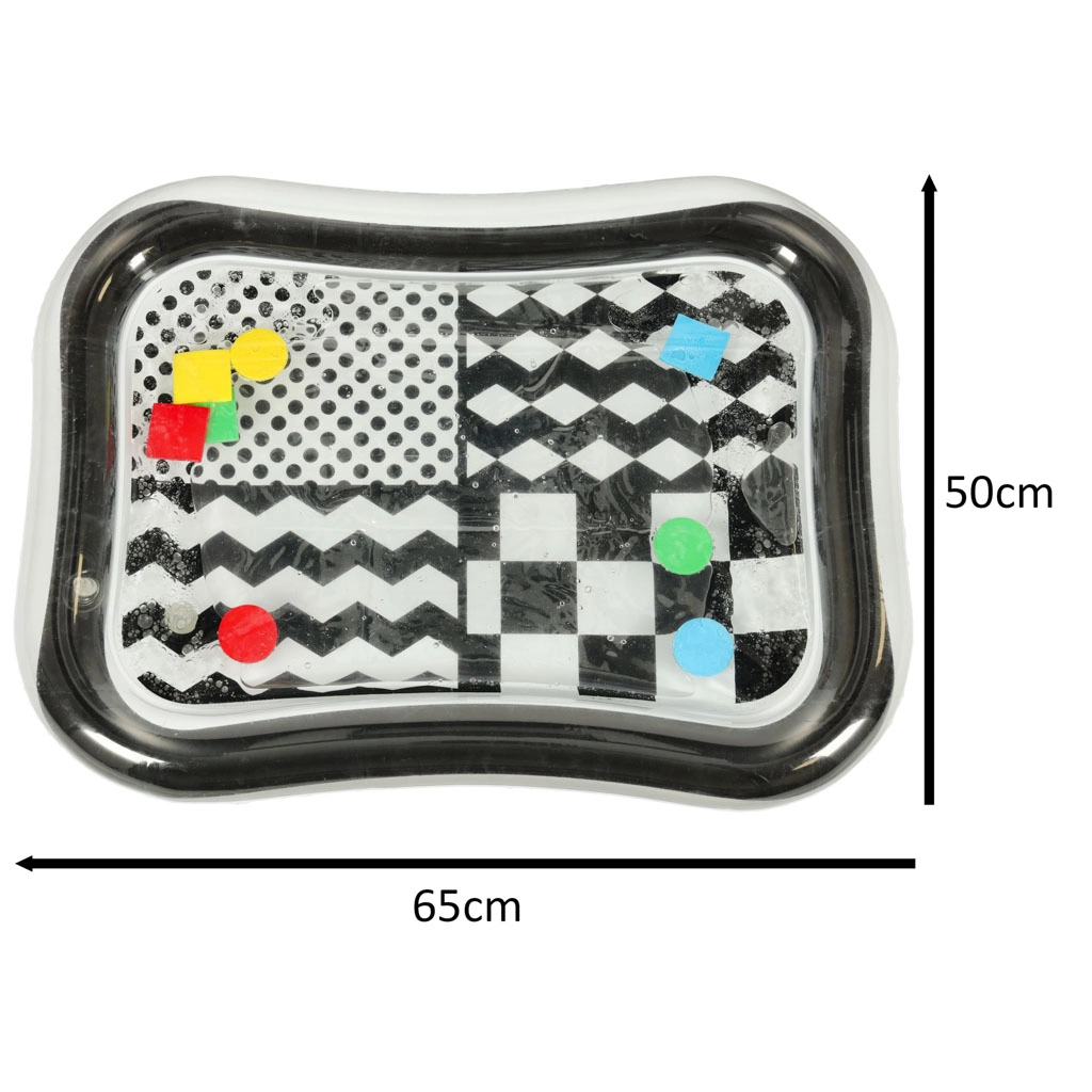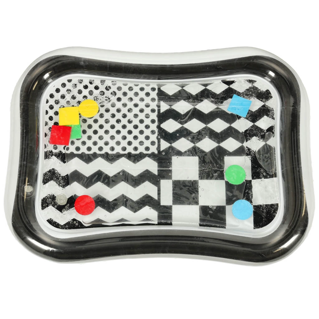 Το αντιθετικό υδάτινο χαλάκι έχει σχεδιαστεί για την αισθητηριακή διέγερση των μικρών παιδιών. Κατασκευασμένο από υλικό υψηλής ποιότητας και εξοπλισμένο με ασπρόμαυρο μοτίβο, προσφέρει οπτική διέγερση, ενώ τα πολύχρωμα σχήματα μέσα στο υγρό προσφέρουν διαδραστική διασκέδαση. Τα παιδιά μπορούν να παρακολουθούν τα σχήματα που επιπλέουν στο νερό, γεγονός που τα ενθαρρύνει στο παιχνίδι και τη συγκέντρωση.