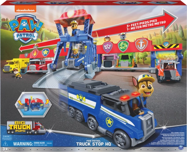 Το σετ περιλαμβάνει τον Chase στη νέα του μεγάλη φορτηγάτη έκδοση. Μπορείτε να βάλετε τον Chase στη θέση του οδηγού, να στοχεύσετε με τον εκτοξευτή και με το πάτημα του κουμπιού στο κέντρο ελέγχου να ξεκινήσετε τη δράση. Πατώντας το σήμα της Patrol στην οροφή της μονάδας ελέγχου ενεργοποιείτε τα ηχητικά και φωτεινά εφέ, που προσθέτουν ακόμη περισσότερη διασκέδαση και ένταση καθώς αναπαράγετε αγαπημένες στιγμές από τη σειρά.