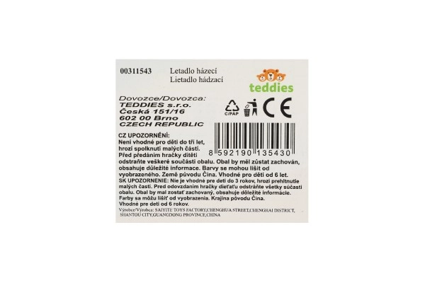 Το ριπτόμενο αεροπλάνο από ελαφρύ πολυστυρένιο είναι εξαιρετική επιλογή για τις πρώτες αεροπορικές δοκιμές. Χάρη στο χαμηλό βάρος και την ισορροπημένη κατασκευή, απογειώνεται εύκολα και γλιστρά στον αέρα, ώστε τα παιδιά να μάθουν γρήγορα τη σωστή ρίψη και να ζήσουν πολλή χαρά από το πέταγμα.