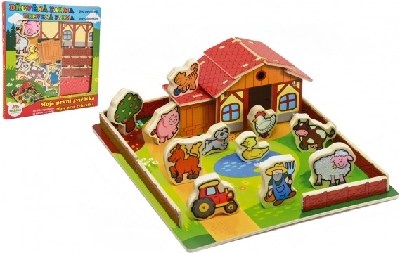 Αυτή η ξύλινη φάρμα είναι ιδανική για μικρά παιδιά από 3 ετών. Σε ξύλινη βάση διαστάσεων 31 x 31 cm, η φάρμα συναρμολογείται εύκολα, δημιουργώντας ένα τέλειο σπιτάκι για παιχνίδι γεμάτο ζωάκια. Αποτελείται από 28 κομμάτια, που προσφέρουν ατελείωτες δυνατότητες για δημιουργικό παιχνίδι.