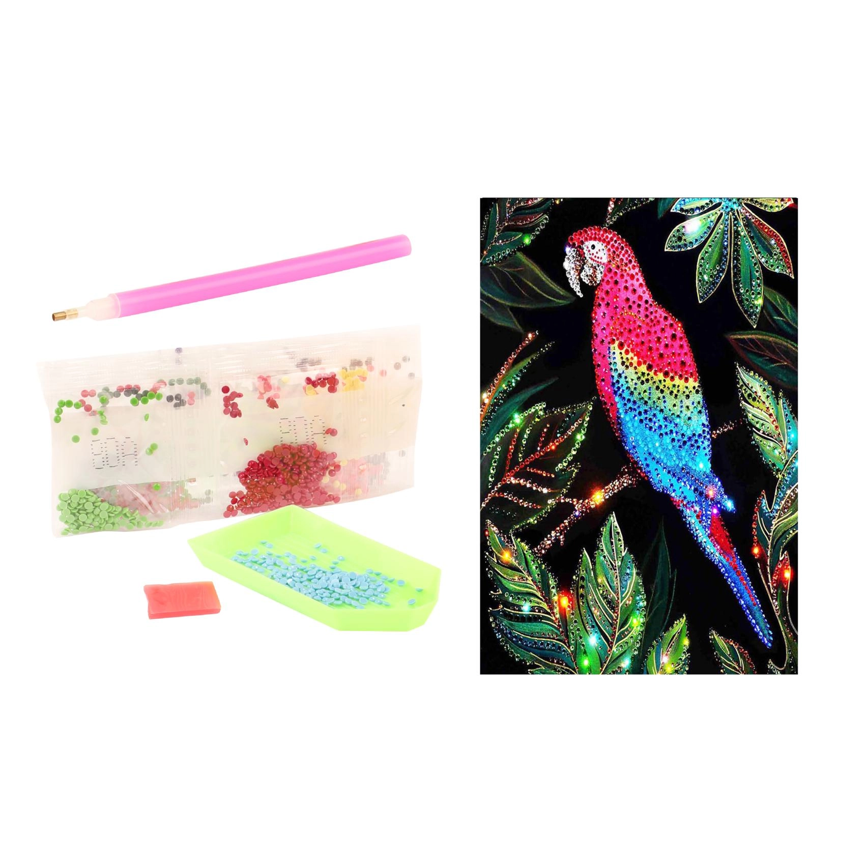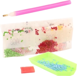 Η ζωγραφική με διαμάντια είναι μια διασκεδαστική και χαλαρωτική τεχνική, όπου με τη βοήθεια του εφαρμογέα μεταφέρετε μικρά “διαμάντια” σε αυτοκόλλητο καμβά σύμφωνα με τον προεκτυπωμένο κωδικό. Τα πετραδάκια είναι ταξινομημένα σε σακουλάκια με γράμματα και σύμβολα, ώστε να ξέρετε ακριβώς πού ανήκει κάθε κομμάτι. Το αποτέλεσμα είναι μια λαμπερή εικόνα 10 × 15 cm, που θα διακοσμήσει το δωμάτιό σας ή θα αποτελέσει ένα όμορφο δώρο.