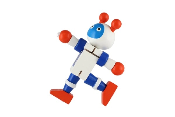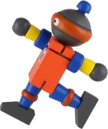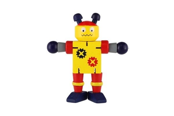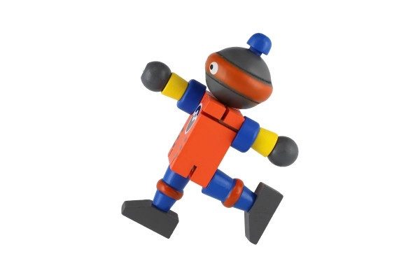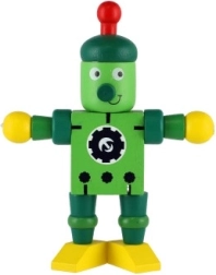 Χαριτωμένο ξύλινο ρομπότ ύψους 12 εκ. που θα ενθουσιάσει κάθε μικρό εξερευνητή. Χάρη στα ελαστικά λαστιχάκια έχει κινητά άκρα και κεφάλι, ώστε τα παιδιά να μπορούν εύκολα να το καθίσουν, να το σταθούν ή να το διαμορφώσουν σε διάφορες πόζες. Το παιχνίδι υποστηρίζει τη λεπτή κινητικότητα, την δημιουργικότητα και τη φαντασία. Κατάλληλο από 18 μηνών.
