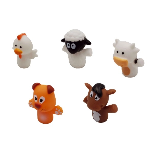 Σετ 5 δαχτυλόκουκλων (αγελαδίτσα, αλογάκι, σκυλάκι, προβατάκι, κοτοπουλάκι) για ατελείωτες αγροτικές ιστορίες και διασκέδαση.