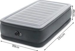 Το φουσκωτό κρεβάτι Intex Deluxe είναι εξαιρετική επιλογή για φιλοξενούμενους, ενοικιαζόμενους χώρους ή διακοπές. Το υπερυψωμένο ύψος των 46 cm διευκολύνει το σηκώμα και η μαλακή, φλοκαριστή επιφάνεια προσφέρει ευχάριστη αίσθηση και αξιόπιστο κράτημα του σεντονιού. Οι εσωτερικές ενισχύσεις Fiber-Tech από ανθεκτικές πολυεστερικές ίνες διατηρούν το στρώμα σταθερό και με σωστό σχήμα, ενώ το σύστημα Dura-Beam κατανέμει ομοιόμορφα το βάρος και υποστηρίζει τη σωστή ευθυγράμμιση της σπονδυλικής στήλης.