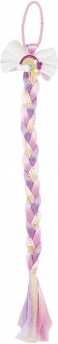 Το λαστιχάκι μαλλιών με φιόγκο και πολύχρωμη πλεξούδα είναι το ιδανικό αξεσουάρ για μικρές πριγκίπισσες. Αυτή η ουράνιοτόξινη τούφα χαρίζει σε κάθε χτένισμα μια χαρούμενη και πρωτότυπη εμφάνιση.