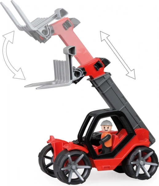 Αυτός ο τηλεσκοπικός φορτωτής είναι κατασκευασμένος από ποιοτικό πλαστικό και προσφέρει στιβαρή κατασκευή που αντέχει σε έντονο παιχνίδι. Χάρη στους λαστιχένιους τροχούς με αθόρυβη κύλιση, είναι ιδανικός και για παιχνίδι σε εσωτερικούς χώρους. Με την ανακλινόμενη καμπίνα και την ενεργή φιγούρα, τα παιδιά μπορούν εύκολα να φανταστούν ότι είναι πραγματικοί χειριστές ενός κατασκευαστικού οχήματος.