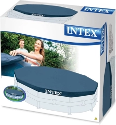 Το κάλυμμα INTEX είναι απαραίτητο αξεσουάρ για κάθε υπέργεια πισίνα. Αποτρέπει την πτώση φύλλων, εντόμων και σκόνης στο νερό, μειώνοντας τον χρόνο συντήρησης και την κατανάλωση χημικών. Οι οπές αποστράγγισης εμποδίζουν τη συσσώρευση βρόχινου νερού στην επιφάνεια και εξασφαλίζουν πιο ασφαλή χρήση.