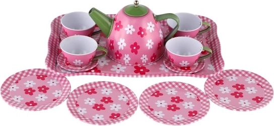 Αυτό το παιδικό μεταλλικό σετ τσαγιού προσφέρει στα παιδιά χαρά μέσα από το φανταστικό σερβίρισμα και το κοινωνικό παιχνίδι. Το σετ είναι κατασκευασμένο από μέταλλο, επομένως είναι στιβαρό, ανθεκτικό και ελαφρύ για μικρά χέρια. Τα πολύχρωμα μοτίβα με λουλούδια, πεταλούδες ή φρούτα ενισχύουν τη δημιουργικότητα και τη φαντασία, ενώ ο δίσκος σερβιρίσματος διευκολύνει τη μεταφορά και το παιχνίδι.