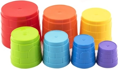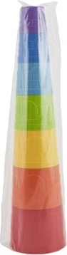 Αυτή η πολύχρωμη στοιβαζόμενη πυραμίδα προσφέρει στα παιδιά πολλή διασκέδαση και μάθηση μαζί. Επτά πλαστικά κυπελλάκια σε διάφορα μεγέθη μπορούν να χτιστούν εύκολα σε ψηλό πύργο ή να στοιβαχτούν το ένα μέσα στο άλλο – εξασκεί τη λογική, την υπομονή και τη λεπτή κινητικότητα.