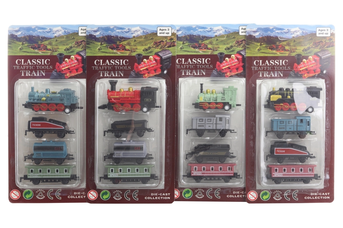 Ανακαλύψτε τη διασκέδαση στις ράγες με ένα στιλάτο σετ μεταλλικών τρενιών για παιδιά από 3 ετών. Το σετ περιλαμβάνει μηχανή και 3 βαγόνια, που εντυπωσιάζουν με την προσεγμένη λεπτομέρεια και την ανθεκτική μεταλλική κατασκευή – ιδανικά για μικρούς λάτρεις των τρένων.