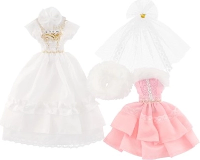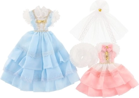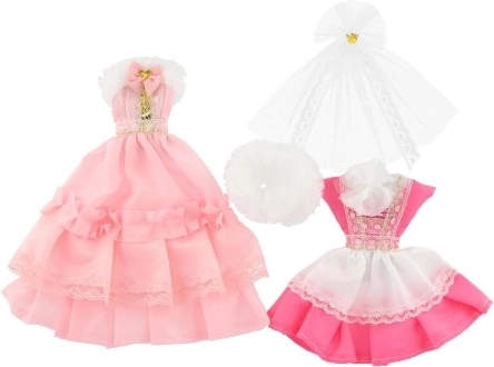 Δύο διαφορετικά σετ φορεμάτων, το καθένα με τις δικές του λεπτομέρειες που χαρίζουν σε κάθε κούκλα μοναδική εμφάνιση.