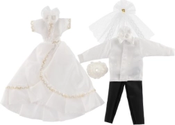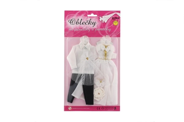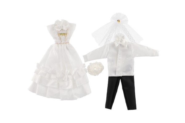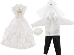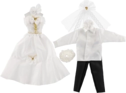 Με αυτό το μοναδικό σετ γαμήλιου ντυσίματος, οι κούκλες σας μπορούν να γίνουν οι σταρ κάθε φανταστικού γάμου! Τα ρούχα περιλαμβάνουν λεπτομερώς δουλεμένο φόρεμα και κομψό κοστούμι, που χαρίζουν στο γαμήλιο παραμύθι σας μαγεία και λάμψη.