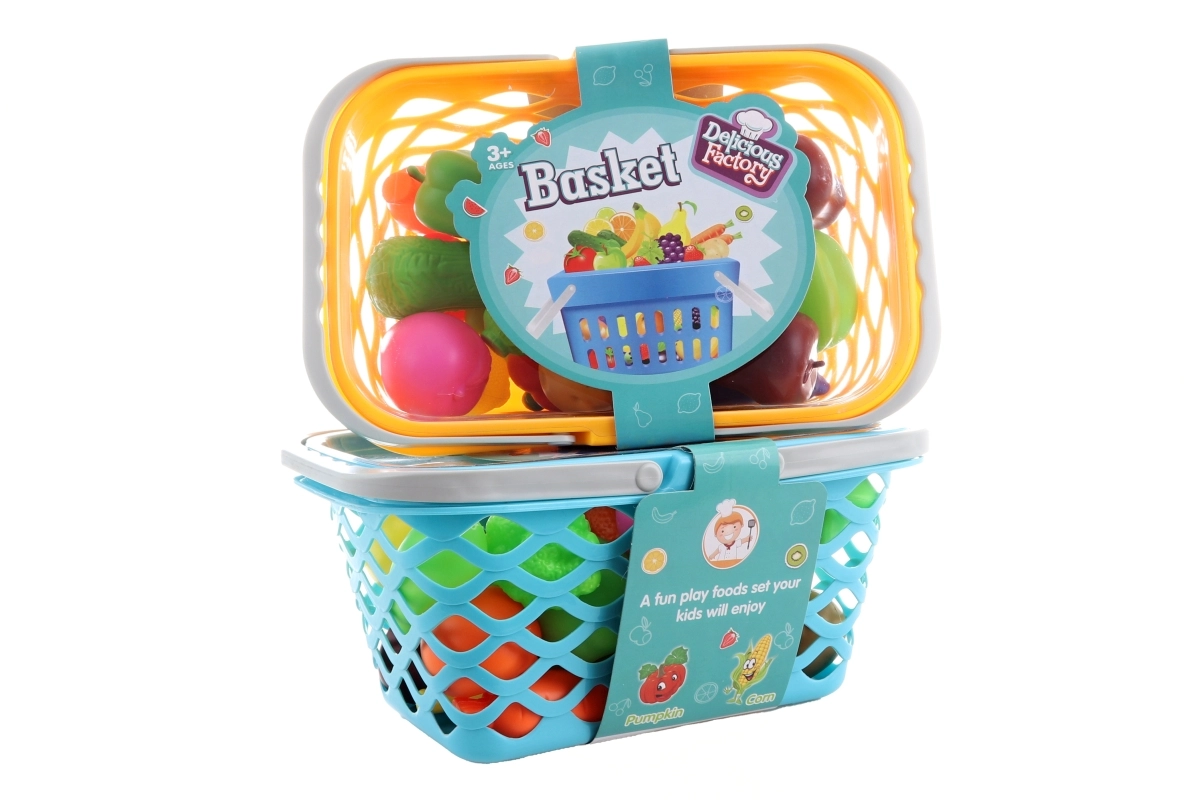 Αυτό το πολύχρωμο σετ πλαστικών φρούτων και λαχανικών σε καλαθάκι θα ενθουσιάσει κάθε μικρό λάτρη της μαγειρικής και των αγορών. Το καλαθάκι με αεραγωγούς γρίλιας και καπάκι λειτουργεί ως πρακτικός χώρος αποθήκευσης και τσάντα μεταφοράς, ώστε τα παιδιά να μπορούν να παίρνουν τον εξοπλισμό τους σε κάθε παιχνίδι.