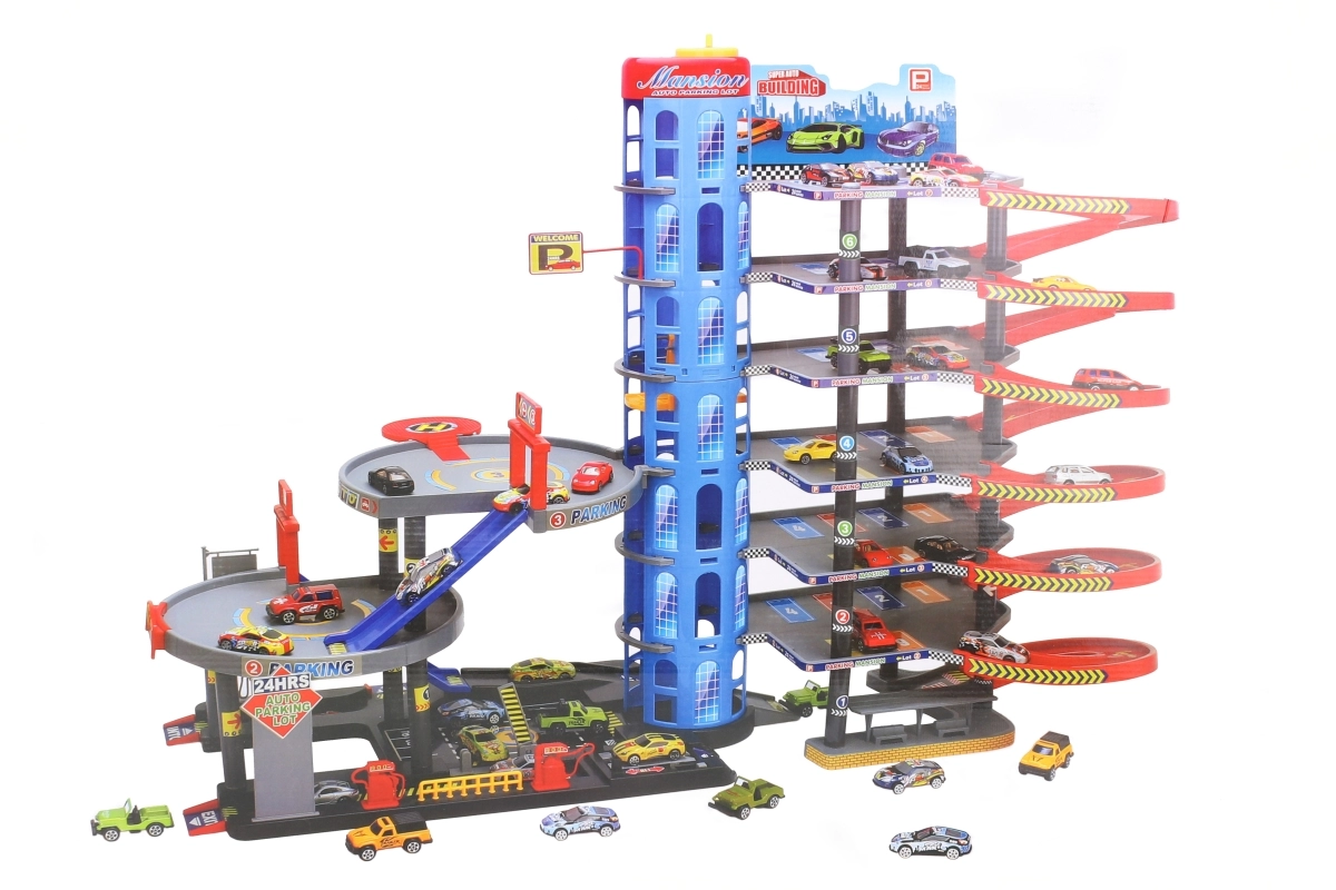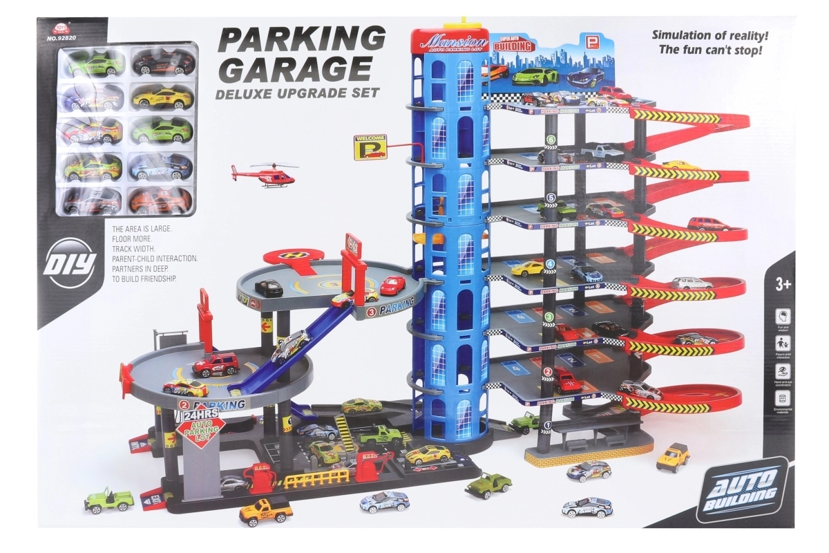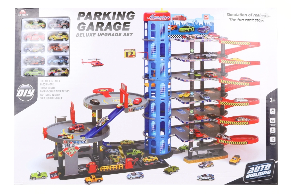 Αυτό το ευρύχωρο πολυώροφο γκαράζ προσφέρει στα παιδιά ώρες δημιουργικού παιχνιδιού. Οι έξι όροφοι συνδέονται με ράμπες και εξόδους, χάρη στις οποίες τα αυτοκινητάκια μπορούν να αγωνίζονται, να παρκάρουν και να κατεβαίνουν με ασφάλεια μεταξύ των επιπέδων. Το ελικοδρόμιο στη στέγη προσθέτει μια νέα διάσταση στο παιχνίδι και ενισχύει ιστορίες από το αστικό περιβάλλον.