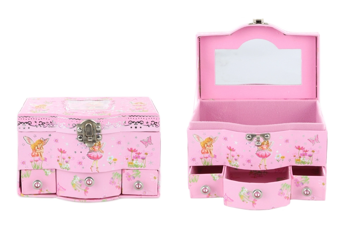 Με τις συμπαγείς διαστάσεις της περίπου 17 × 11,5 × 10 cm ταιριάζει τέλεια σε τουαλέτα, ράφι ή συρταριέρα. Χάρη στην ανθεκτική κατασκευή της είναι κατάλληλη και ως πρώτη κοσμηματοθήκη για παιδιά από 3 ετών. Εξαιρετική ιδέα δώρου που θα χαροποιήσει και θα κρατήσει τα κοσμήματα αποθηκευμένα με ασφάλεια.