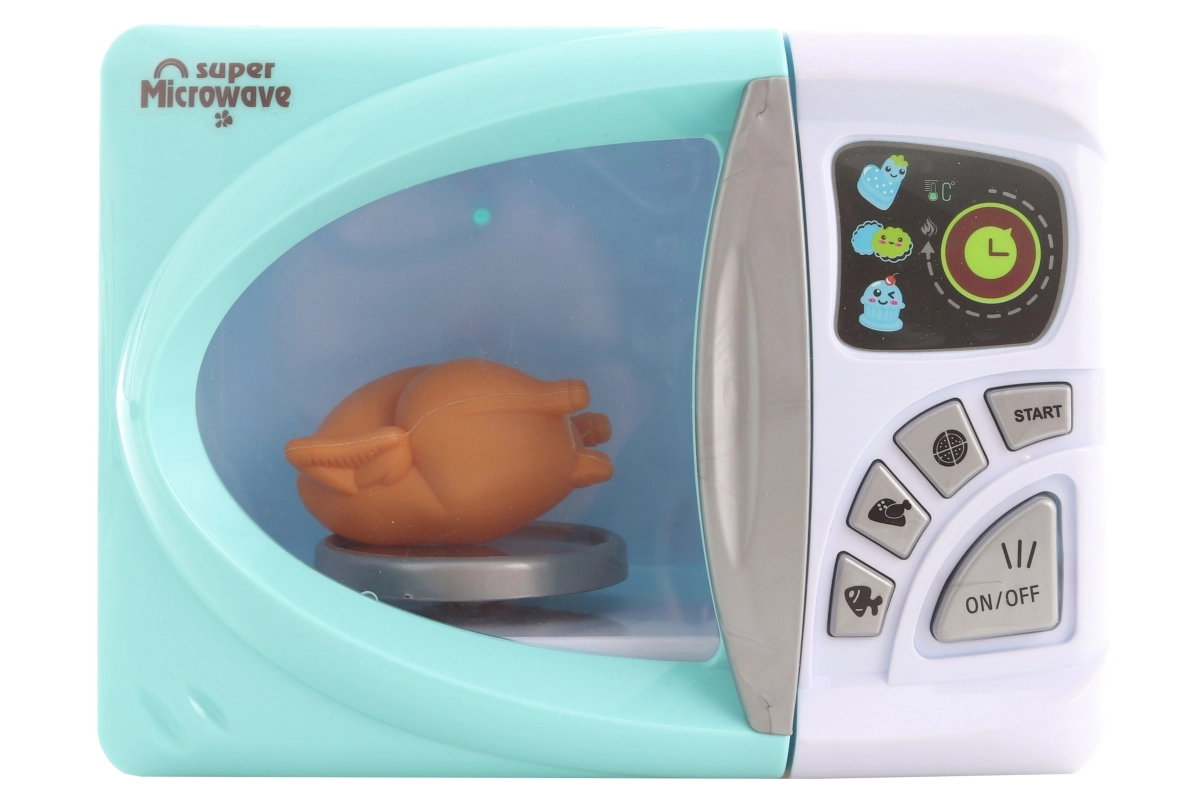 Αυτός ο παιδικός φούρνος μικροκυμάτων σε τιρκουάζ και λευκό είναι ιδανικό συμπλήρωμα για κάθε παιδική κουζίνα. Με την ενεργοποίηση, ο δίσκος μέσα περιστρέφεται και το παιχνίδι συνοδεύεται από φωτεινά εφέ που μιμούνται πιστά μια πραγματική συσκευή.
