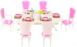 Δημιουργήστε το τέλειο δείπνο για κούκλες με το πλήρες σετ Glorie. Το μεγάλο τραπέζι και οι έξι καρέκλες προσφέρουν άφθονο χώρο για καλεσμένους, ενώ τα λεπτομερή αξεσουάρ δίνουν ρεαλιστική αίσθηση στο παιχνίδι. Το σετ είναι σχεδιασμένο για εύκολη χρήση από παιδιά και ενισχύει τη φαντασία, την επικοινωνία και τη λεπτή κινητικότητα.