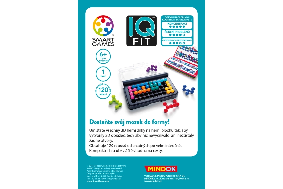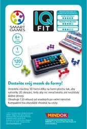 Το IQ Fit είναι ένα πολυεπίπεδο λογικό παιχνίδι, στο οποίο τοποθετείτε χρωματιστά 3D κομμάτια στην επιφάνεια του ταμπλό ώστε να δημιουργήσουν ένα τέλειο 2D σχήμα – τίποτα δεν πρέπει να προεξέχει και κανένα κενό δεν πρέπει να μείνει ανοιχτό. Κάθε δοκιμασία έχει μία μόνο σωστή λύση, προσφέροντας μια δίκαιη πρόκληση και μια καθαρή αίσθηση επιτυχίας.
