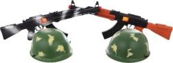 Διασκεδαστικό παιδικό σετ για μικρούς στρατιώτες που περιλαμβάνει πλαστικό αυτόματο με ήχο κροταλίσματος μήκους περίπου 53 εκ. και στρατιωτικό κράνος με εσωτερική διάμετρο περίπου 18,5 εκ.. Εξαιρετική επιλογή για παιχνίδι στρατιωτάκια, ανάπτυξη φαντασίας και δράση περιπέτειας. Κατάλληλο για παιδιά από 3 ετών.