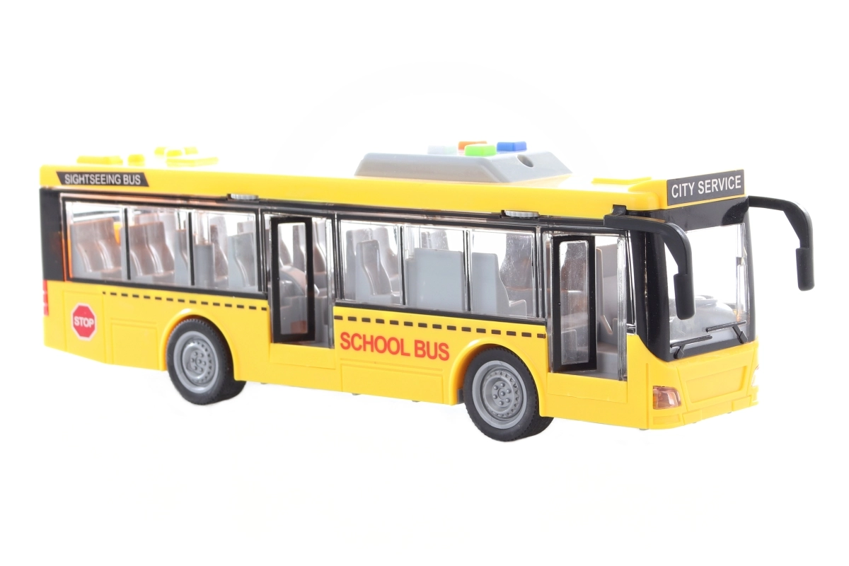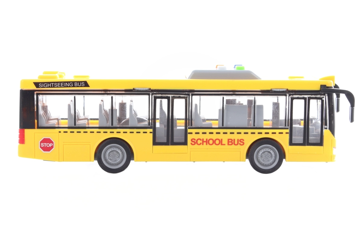 Ρεαλιστικό κίτρινο σχολικό λεωφορείο που θα ενθουσιάσει κάθε μικρό οδηγό. Προσφέρει φωτεινά και ηχητικά εφέ, μηχανισμό αδράνειας για ομαλή κίνηση και λεπτομερώς σχεδιασμένο εσωτερικό. Περιλαμβάνονται μπαταρίες AG13, ώστε η διασκέδαση να ξεκινήσει αμέσως μετά το άνοιγμα της συσκευασίας.