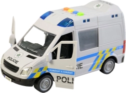 Αυτό το αστυνομικό βαν θα χαροποιήσει όλα τα παιδιά που λατρεύουν τις δράσεις και τις αποστολές. Το όχημα κινείται με αδράνεια, διαθέτει φωτεινό μπλε φάρο με προειδοποιητικά φώτα και αναπαράγει αυθεντικές ελληνικές ανακοινώσεις πληρώματος και κέντρου επιχειρήσεων, όπως σε πραγματική αστυνομική επιχείρηση. Οι ανοιγόμενες πόρτες ενισχύουν το ρεαλιστικό παιχνίδι και τη φαντασία.