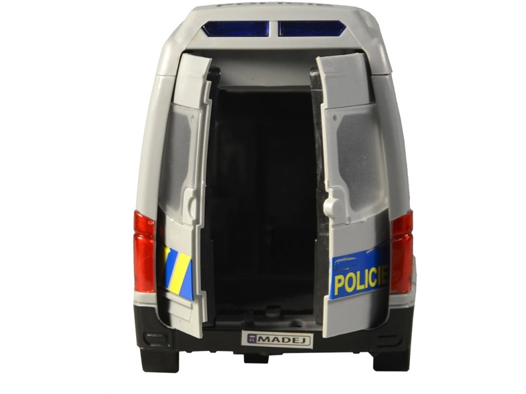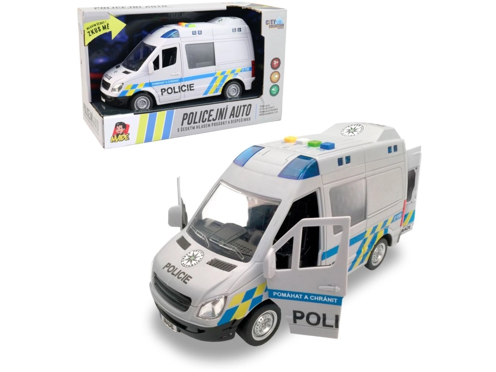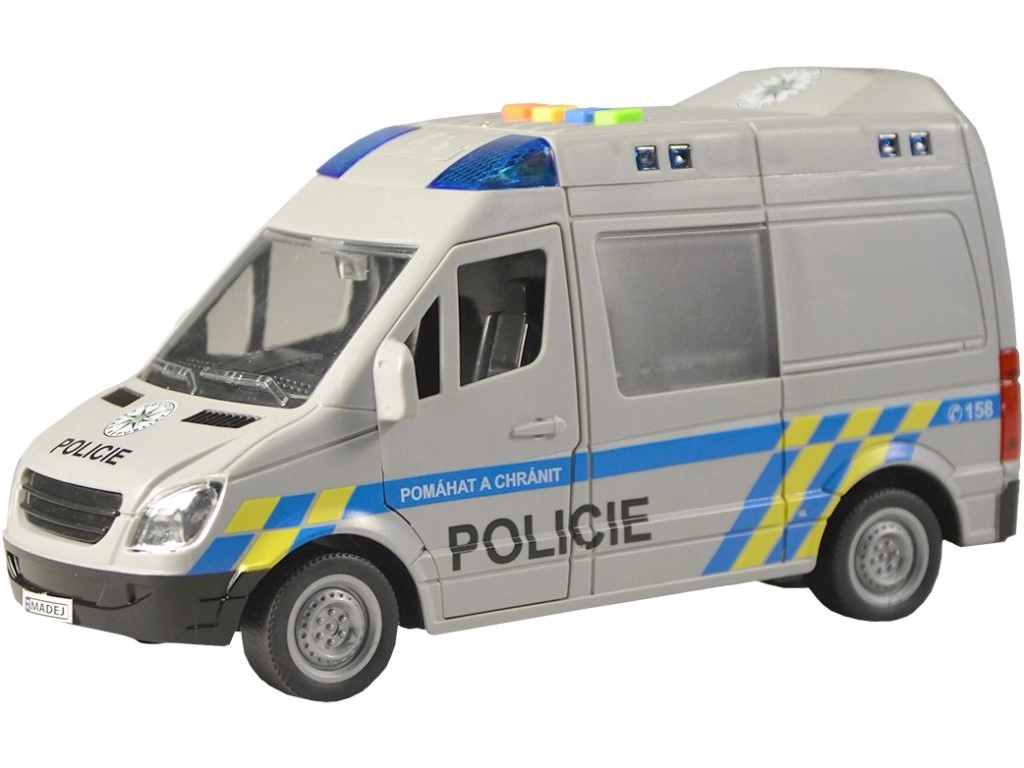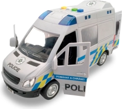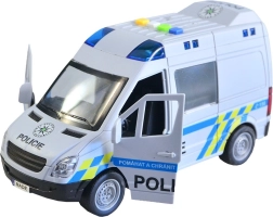 Ρεαλιστικό αστυνομικό βαν για μικρούς διασώστες με ελληνικές φωνητικές ανακοινώσεις πληρώματος και κέντρου επιχειρήσεων, λειτουργικό μπλε φάρο και μηχανισμό αδράνειας. Ανοιγόμενες πόρτες και λεπτομερής κατασκευή σε κλίμακα 1:16 εξασφαλίζουν άφθονη διασκέδαση. Το μήκος του οχήματος είναι 21 εκ., τροφοδοσία 3× 1,5 V AG13. Κατάλληλο από 3 ετών.