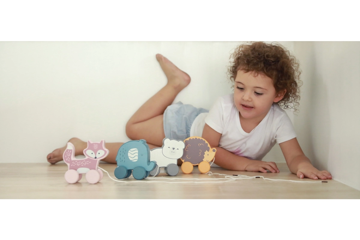 Το συρόμενο παιχνίδι διαθέτει κορδόνι για εύκολο τράβηγμα, βοηθώντας στη βελτίωση των κινητικών δεξιοτήτων των παιδιών.