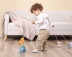 Χάρη στους κινητούς τροχούς και στη δυνατότητα έλξης, το παιχνίδι ενισχύει τη σωματική ανάπτυξη και τον συντονισμό.