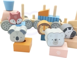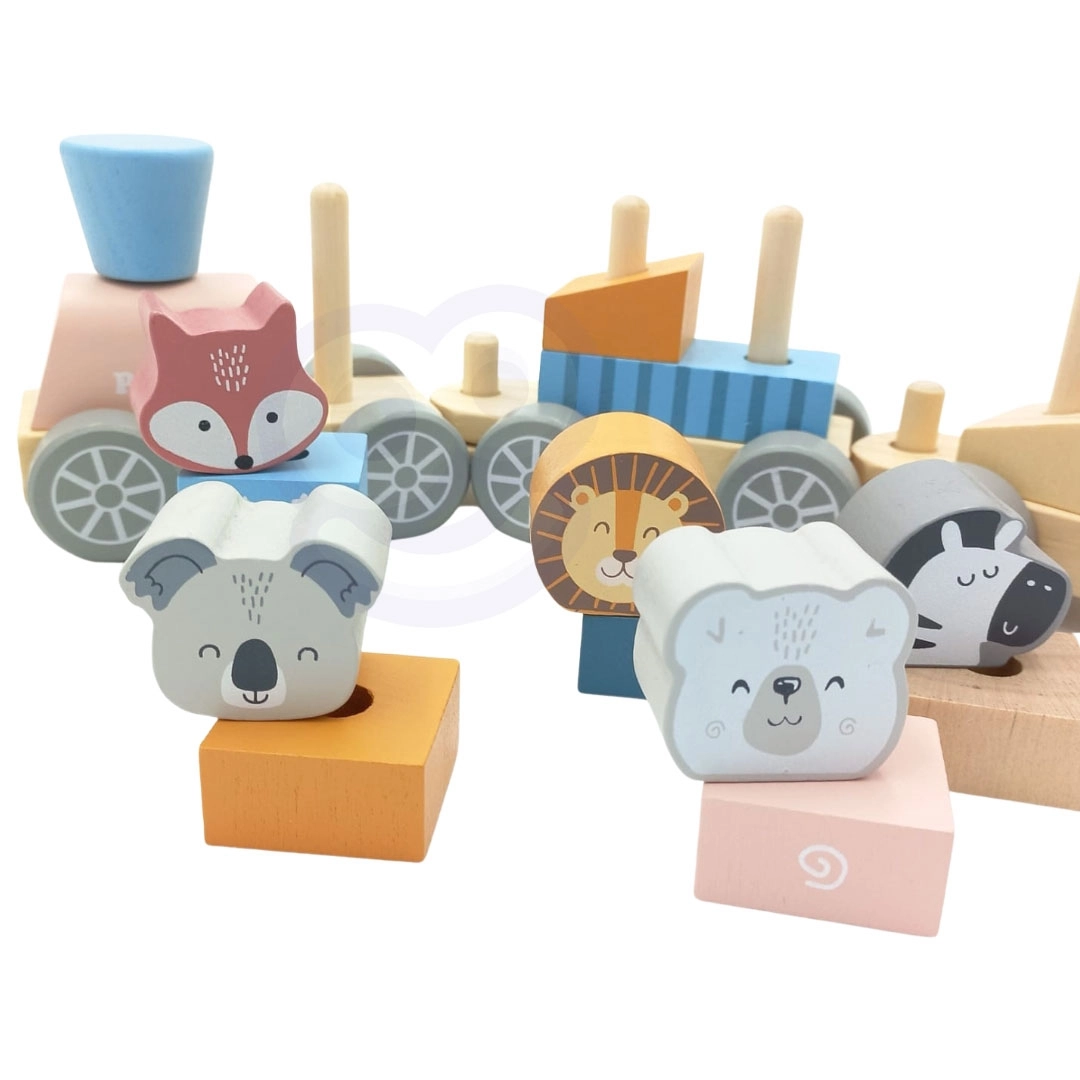 Το ξύλινο παιχνίδι τρενάκι είναι ένα ιδανικό μέσο για την ανάπτυξη της παιδικής δημιουργικότητας και των κινητικών δεξιοτήτων. Με απαλές παστέλ αποχρώσεις και εύκολα πιασμένα τουβλάκια, αυτό το τρενάκι τραβά την προσοχή και εξασφαλίζει πολλές ώρες διασκέδασης στο χτίσιμο και το παιχνίδι.