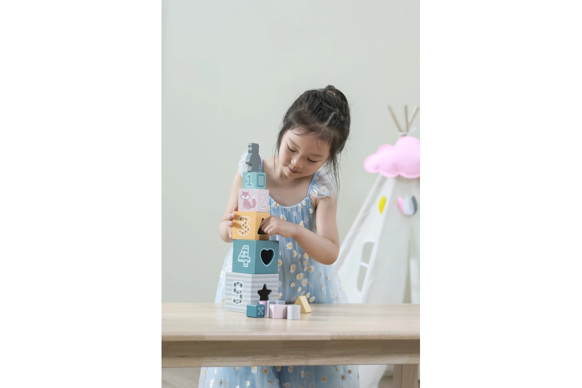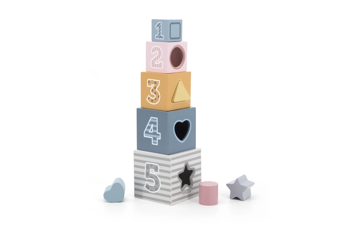 PolarB Πύργος από κύβους με ταξινόμηση σχημάτων είναι ένα εκπαιδευτικό παιχνίδι που αναπτύσσει τη δημιουργικότητα και τις δεξιότητες των παιδιών. Τα πολύχρωμα μπλοκ σε σχήμα πύργου υποστηρίζουν την εκμάθηση αριθμών και σχημάτων, ενισχύουν τη λεπτή κινητικότητα και προσφέρουν άφθονη διασκέδαση.