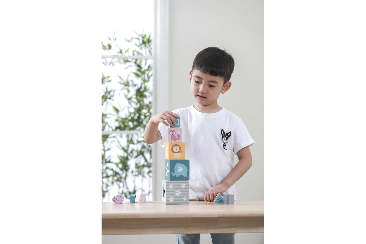 - Τα παιδιά μπορούν να στοιβάζουν ελεύθερα τους κύβους, να μαθαίνουν αριθμούς, να ταιριάζουν σχήματα στον ταξινομητή και να γνωρίζουν τα ζωάκια