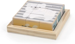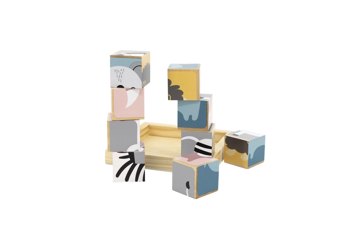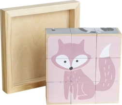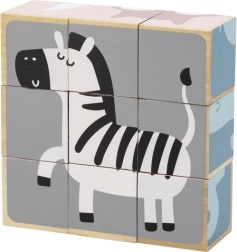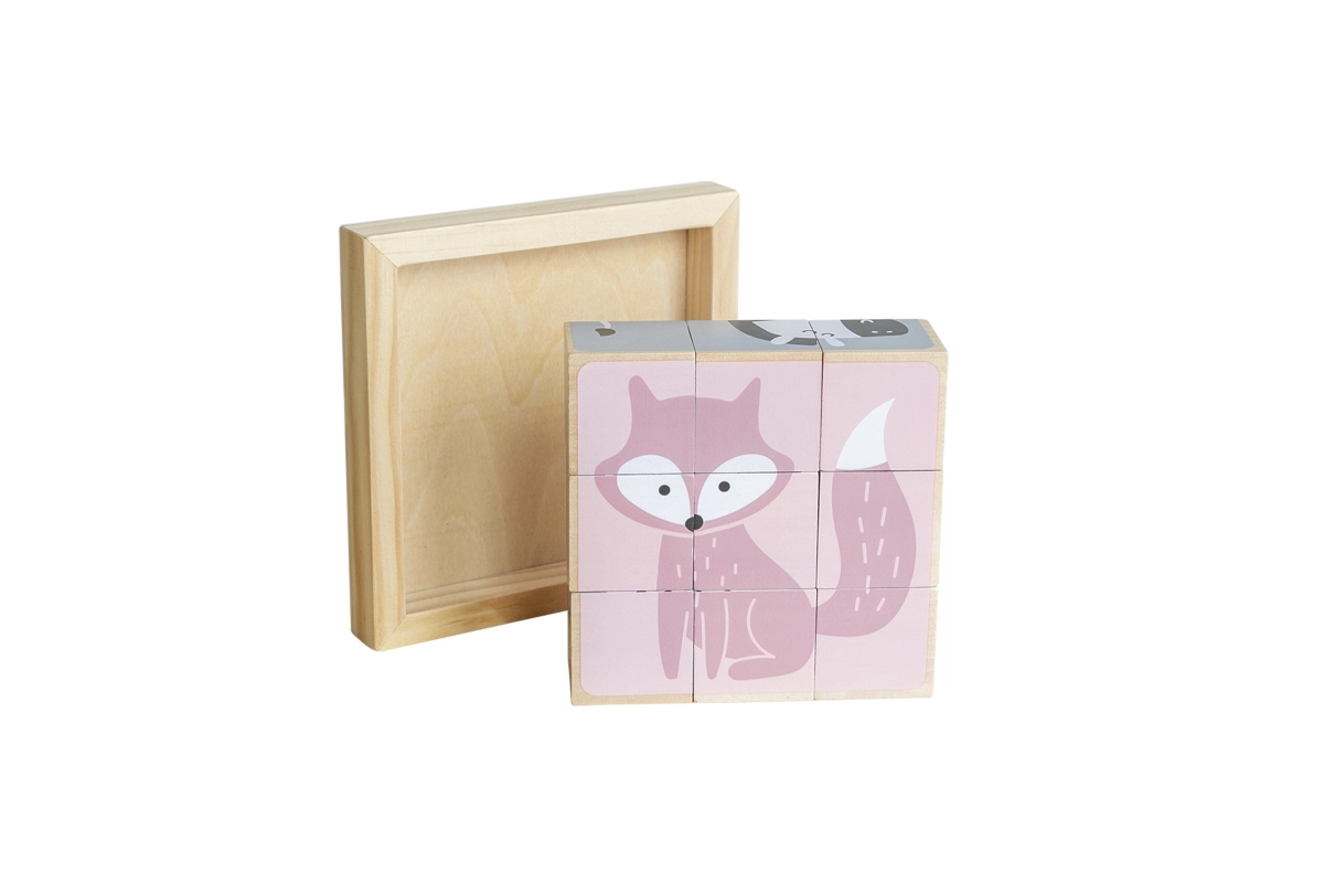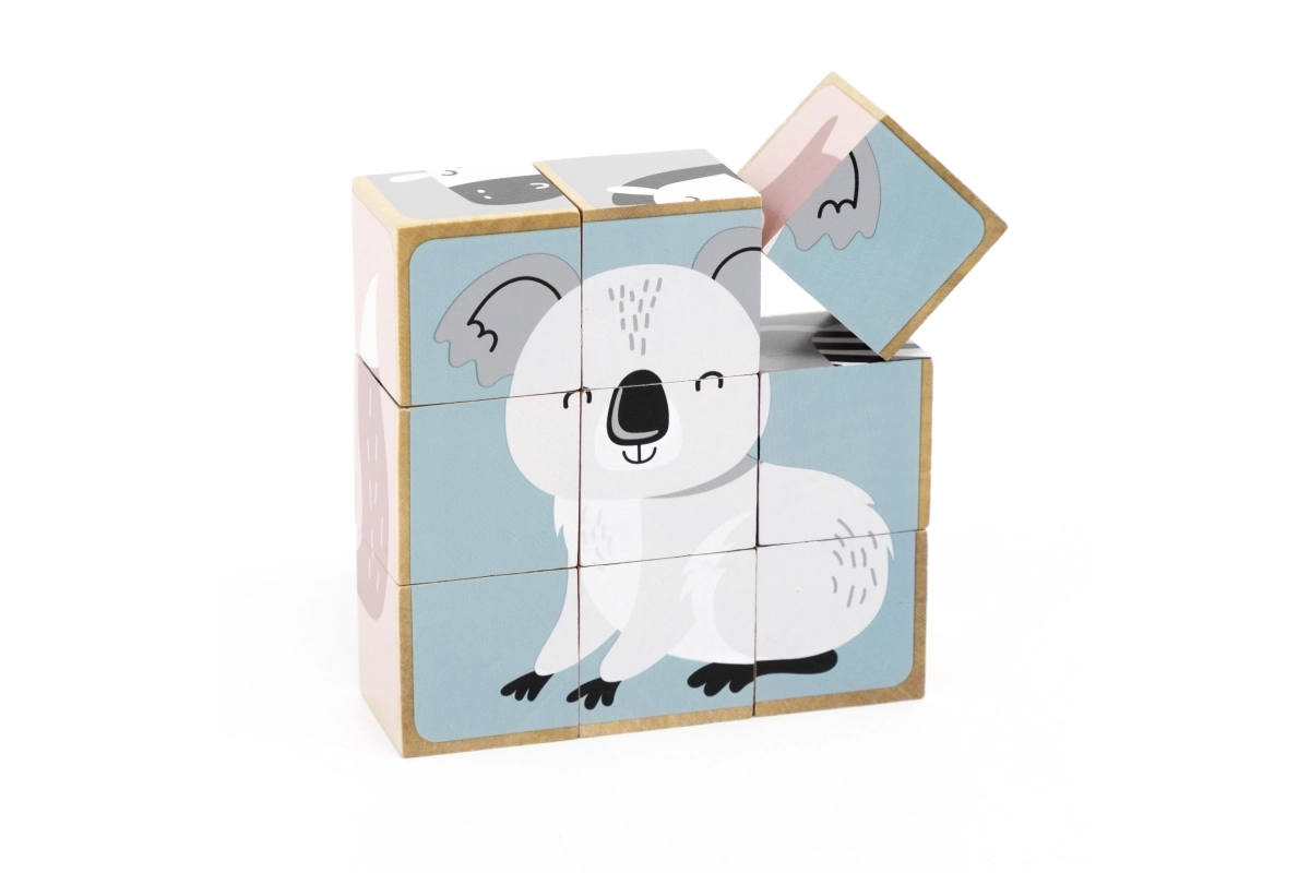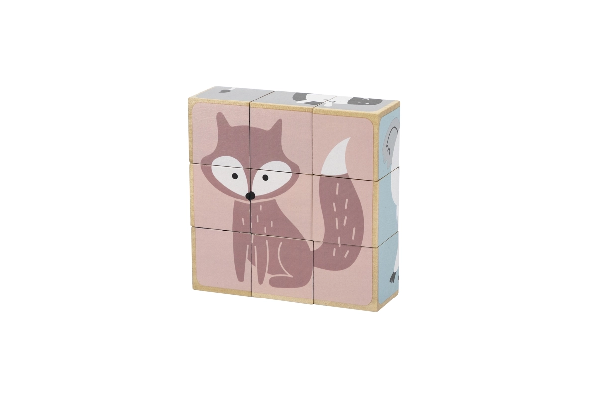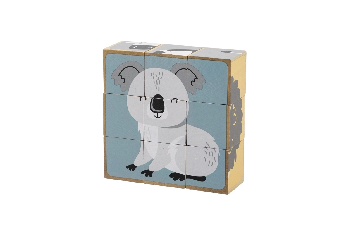 Ανακαλύψτε ένα διαχρονικό ξύλινο παιχνίδι που διασκεδάζει και εκπαιδεύει τα παιδιά. Από 9 κυβάκια δημιουργείτε συνολικά 6 διαφορετικά μοτίβα ζωάκιων – όπως αρκουδάκι, αλεπού, κοάλα, ζέβρα ή σκαντζόχοιρο. Κάθε πλευρά του κύβου ανήκει σε διαφορετική εικόνα, ώστε τα παιδιά να εξασκούν την προσοχή, την υπομονή και την χωρική αντίληψη.