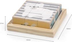 Με αυτά τα ποιοτικά ξύλινα κυβάκια θα συνθέσετε έως και 6 χαριτωμένες εικόνες ζωάκιων. Εννέα στιβαρά κυβάκια από μασίφ ξύλο είναι ιδανικά για παιδιά από 2 ετών και αναπτύσσουν τη λεπτή κινητικότητα, τη λογική σκέψη και την οπτική αντίληψη. Ασφαλής κατασκευή, ευχάριστα παστέλ χρώματα και ανθεκτικός σχεδιασμός για καθημερινό παιχνίδι.