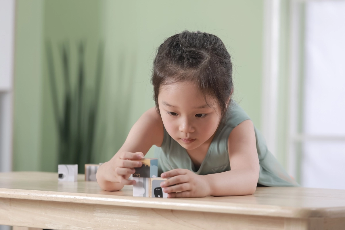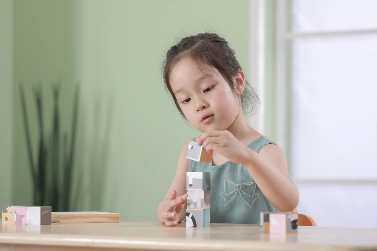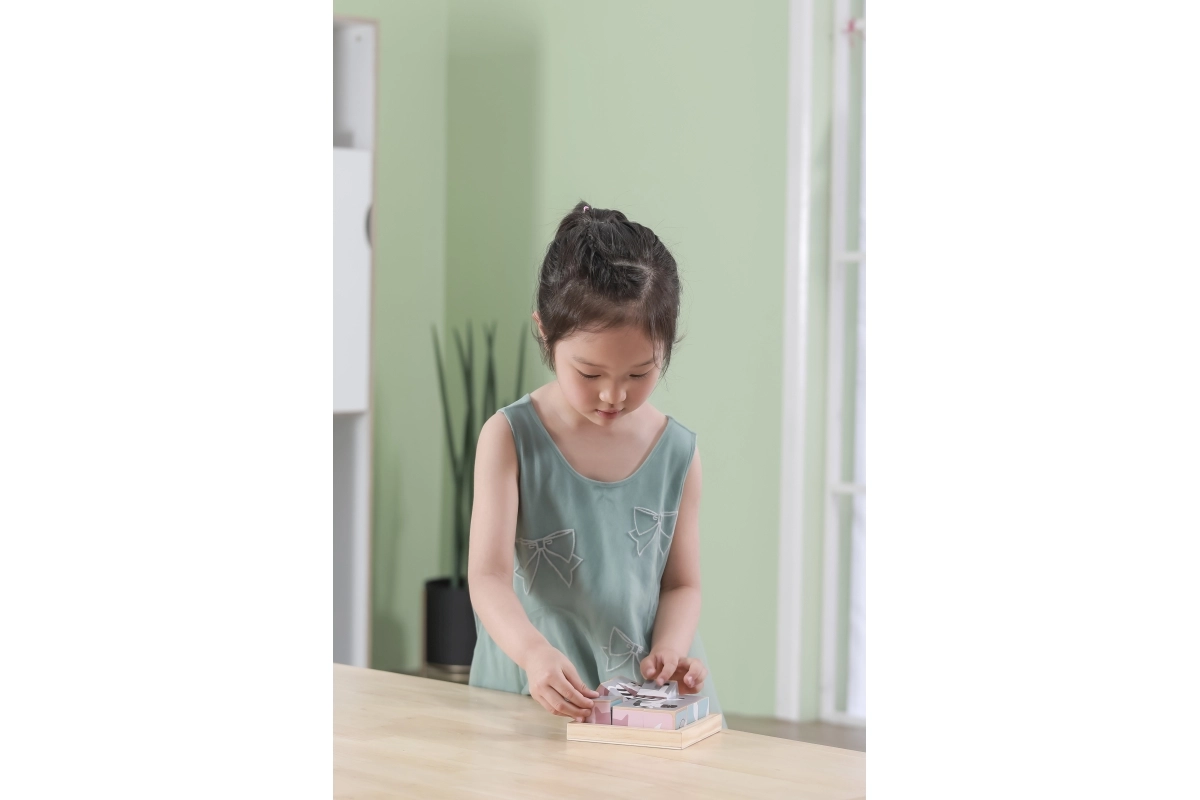 Το παιχνίδι με κυβάκια αναπτύσσει τη λεπτή κινητικότητα, τον συντονισμό ματιού–χεριού, την υπομονή και την οπτική αντίληψη. Ιδανική επιλογή για τα πρώτα λογικά παζλ.