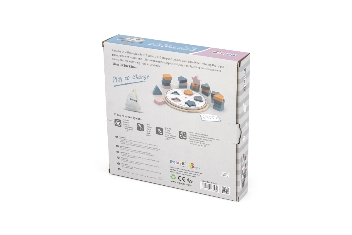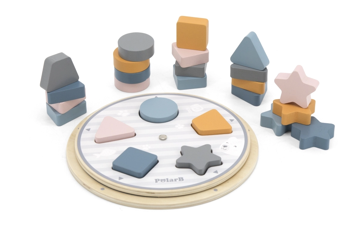 Έξυπνο ξύλινο παιχνίδι για τους μικρούς, που συνδυάζει ταξινόμηση σχημάτων και χρωμάτων, εξασκεί τη λεπτή κινητικότητα και τη λογική σκέψη. Περιλαμβάνει ξύλινα κομμάτια, περιστρεφόμενη βάση, κάρτες με πρότυπα και υφασμάτινο πουγκί. Το παιχνίδι της συλλογής POLARB είναι φτιαγμένο από ποιοτικό ξύλο, βαμμένο με μη τοξικά χρώματα σε απαλές παστέλ αποχρώσεις και ταυτόχρονα διασκεδάζει, διδάσκει και αναπτύσσει τα παιδιά από πολύ μικρή ηλικία.